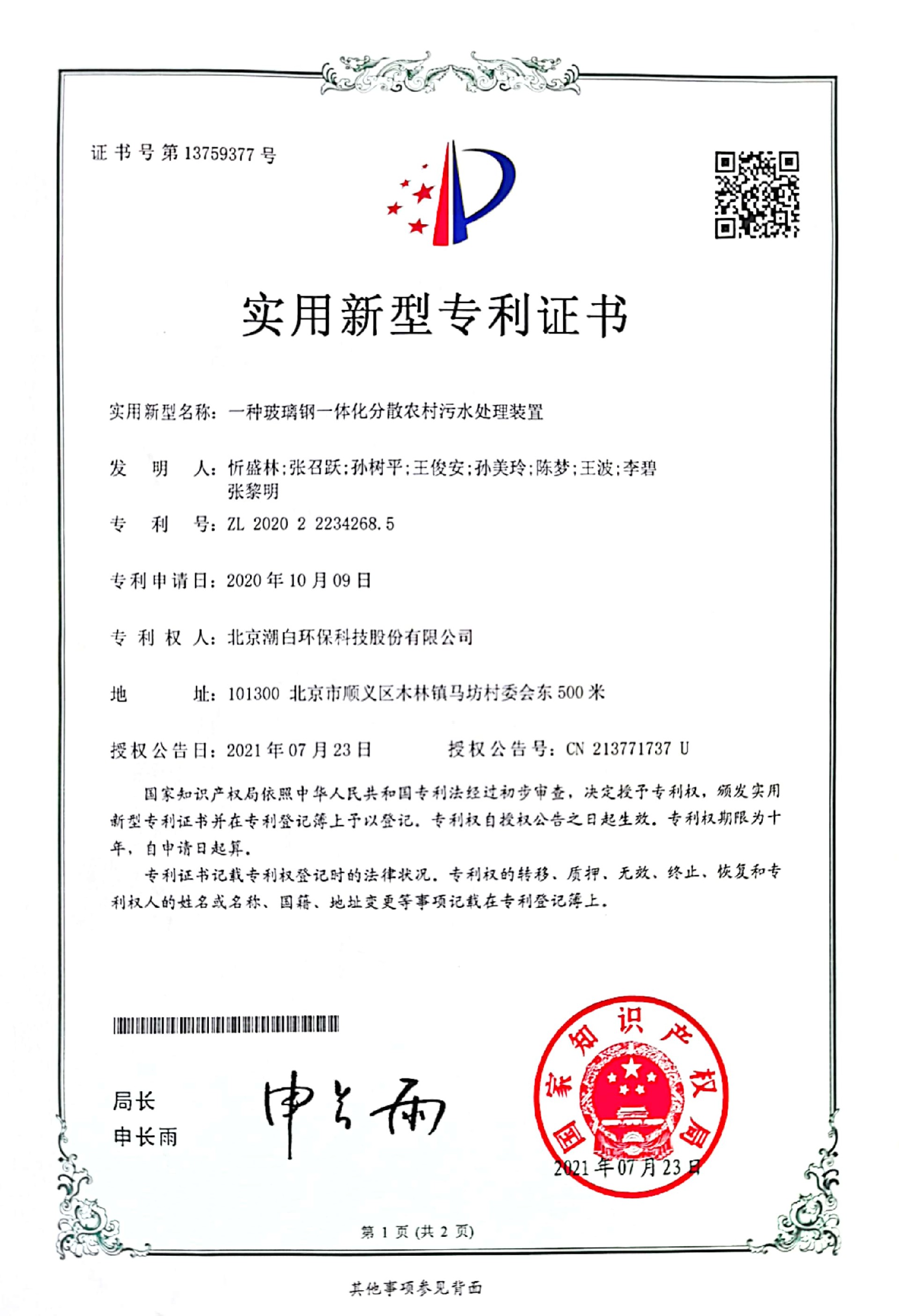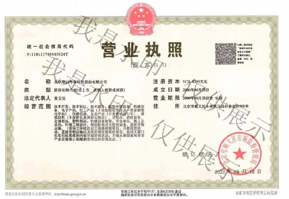 北京潮白环保科技股份有限公司是一家专业从事环境?;び胱试囱防玫淖酆闲愿咝录际跗笠?,注册资金5178万元,成立伊始就组建顾问专家团队加强创新引领,拥有高级、中级职称人员及各类技术人员占比超过50%。